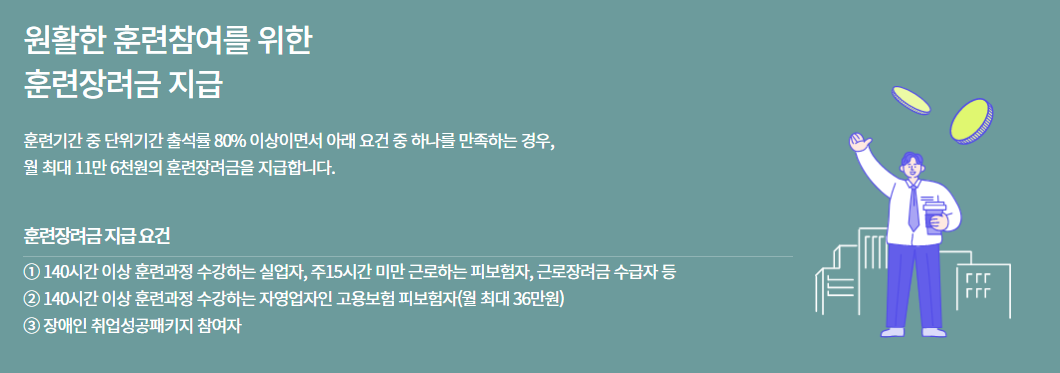 지원 범위 내에서 훈련비의 45~85%가 국비 지원됩니다.