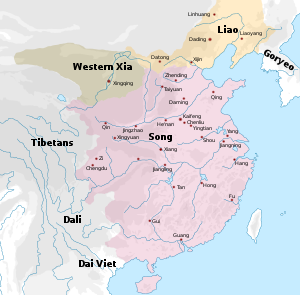 송나라는 한편 북서쪽의 서하의 침략에도 시달리게 되었습니다. 11세기 초, 송나라 심괄의 지휘 하에 서하를 상대로 몇몇 승리를 거두었습니다. 허나 이 승리는 심괄과 그 부하들 간에 불화가 일어나면서 빛이 바랬고 다시 서하에게 송나라 영토가 점령되었습니다. 서하는 송나라 수도까지 쳐들어 오게 되었고 이후 송나라는 또다시 금나라 때와 같이 서하와 굴욕적인 평화조약 경력화약(慶曆和約)을 맺었고 서하에게 조공과 공물을 보내야만 했습니다. 1075년과 1077년 사이에는 베트남의 리 왕조와도 국경 분쟁을 벌였고 송나라는 이 전쟁으로 광시성에 엄청난 타격을 입었습니다. 송나라는 리 왕조와 지속적으로 다투었고 결국 베트남고 송나라 모두 막대한 타격을 입자 평화 조약을 맺는 것으로 전쟁이 끝나고 말았습니다.