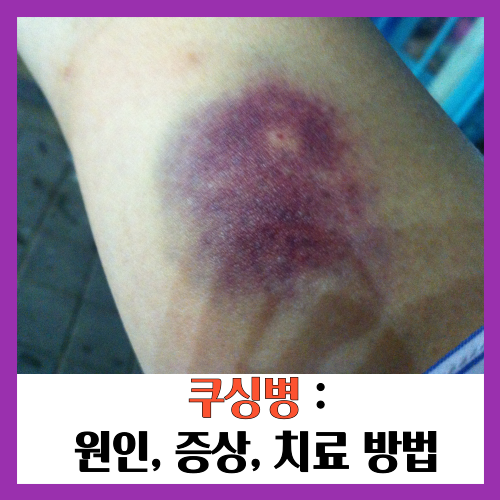 - 피부 변화: 피부가 얇아지고 쉽게 멍이 들며, 보라색 선조(스트레치 마크)가 생길 수 있습니다.