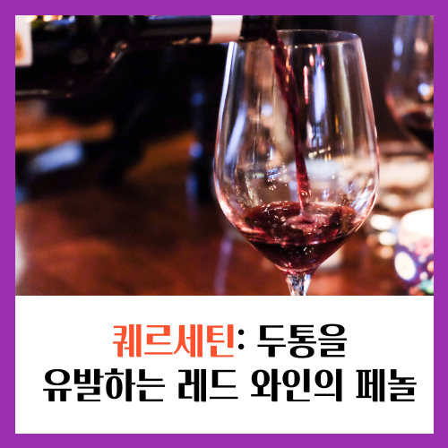 퀘르세틴: 레드 와인을 마신 후 두통이나 메스꺼움을 경험한 적이 있다면, 당신만 그런 것이 아닙니다. ‘레드 와인 두통 증후군’이라는 현상은 많은 와인 애호가들에게 의문을 남기고 있습니다. 황산염(sulfites)과 히스타민(histamines)이 원인으로 오랫동안 지목되어 왔지만, 연구에 따르면 또 다른 원인이 있습니다. 바로 퀘르세틴(quercetin)입니다. 레드 와인에 풍부하게 함유된 이 천연 페놀은 레드 와인 관련 두통의 잠재적 원인으로 인식되고 있습니다. 퀘르세틴이 무엇인지, 우리 몸에 어떻게 영향을 미치는지, 그리고 불편함 없이 와인을 즐길 수 있는 방법을 알아보겠습니다.