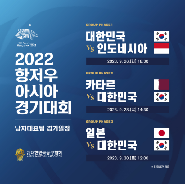 항저우 아시안게임 남자 농구 일정(한국 시간)
