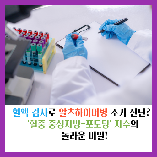 그런데 최근, 혈액 검사만으로 알츠하이머병 초기 환자를 선별할 수 있는 놀라운 연구 결과가 발표되어 많은 주목을 받고 있습니다. 바로 **'혈중 중성지방-포도당(TG/Glucose) 지수'**를 활용하는 방법입니다.